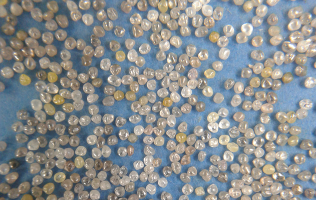 Blocky with irregular shapes, processed to blunt the sharp edges